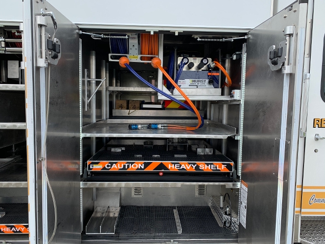 The Anne Arundel County Fire Department has taken delivery of a new E-One Cyclone II with a 24' Stainless Steel (340L) Walk-in Heavy Rescue. This unit features RollTek with air bags; a 20,000LB winch; Galvanized Frame Rails; Cummins ISX12 500 HP motor, EVS4000 Transmission; Portable Winch Receivers; Barrier Style Cab Doors; 20" Vista Cab Roof; Ramco Mirrors, Extreme Duty Metal Interior with Linex: (4) 10,000LB Rope Tie Offs; (2) Hydraulic Reels, (2) Air Reels; (2) Electric Reels; Whelen LED Emergency Lighting Package; Federal Q Mechanical Siren; Whelen Scene Lights, Firetech Hi-Viz brow light, FireCom Wireless Intercom system, 25KW PTO Generator; Night Scan Light Tower, Atlas Copco Air Compressor, 14' Roof Ladder; 24' 2 Section Ladder, 16' 2 Section Ladder and a "Little Giant" Ladder. This unit is assigned to Severn, Station 4 and is part of the Special Operations Division.